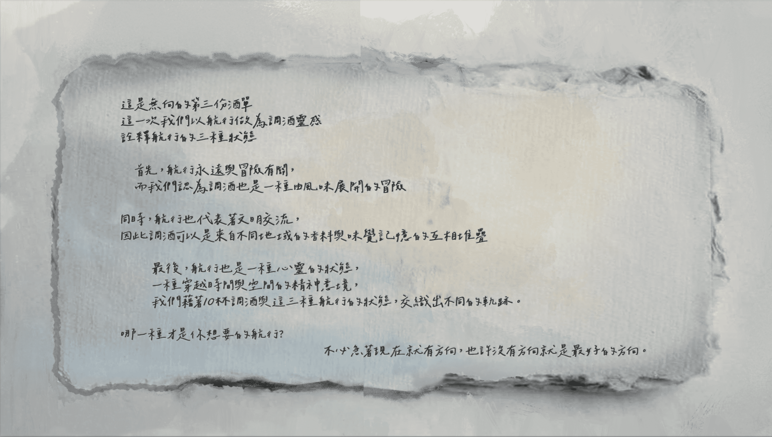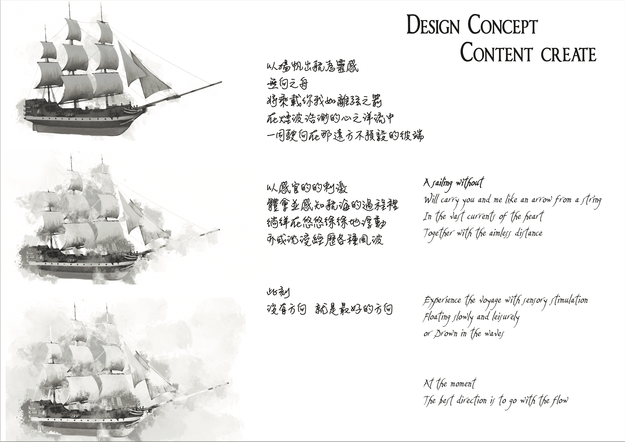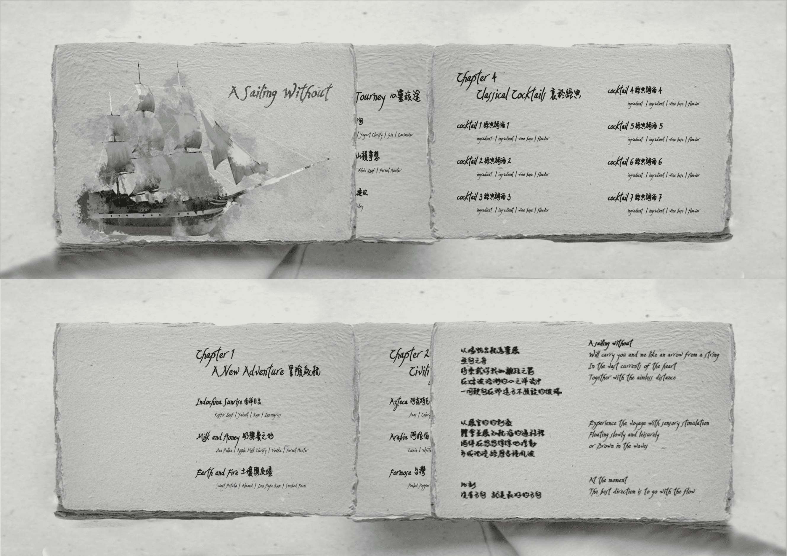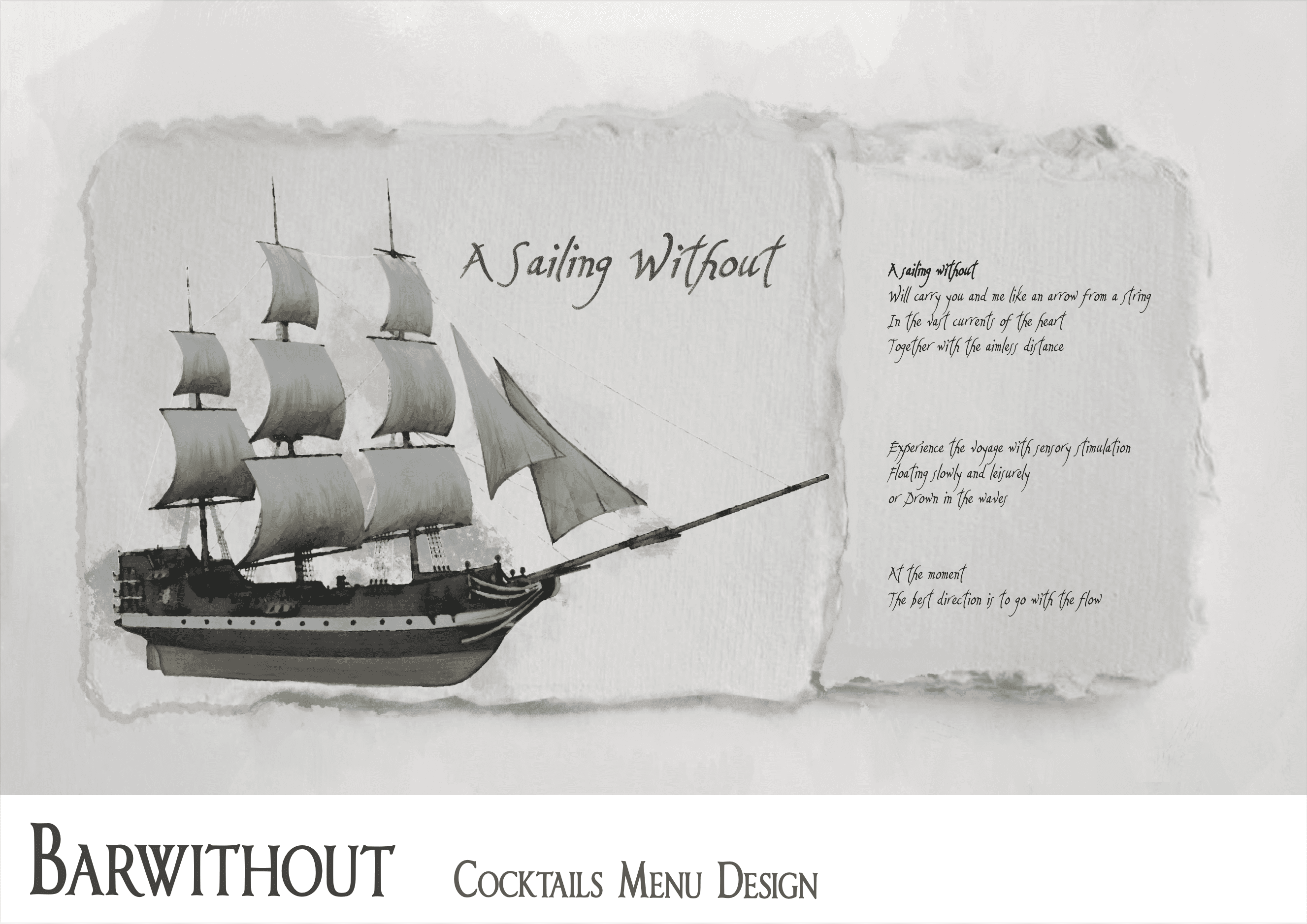 The title "Sailing without purpose, without direction" captures the key elements of the menu, including the inspiration from the concept of sailing, the sensory stimulation that the cocktails offer, and the three ways of sailing that are represented in the menu.