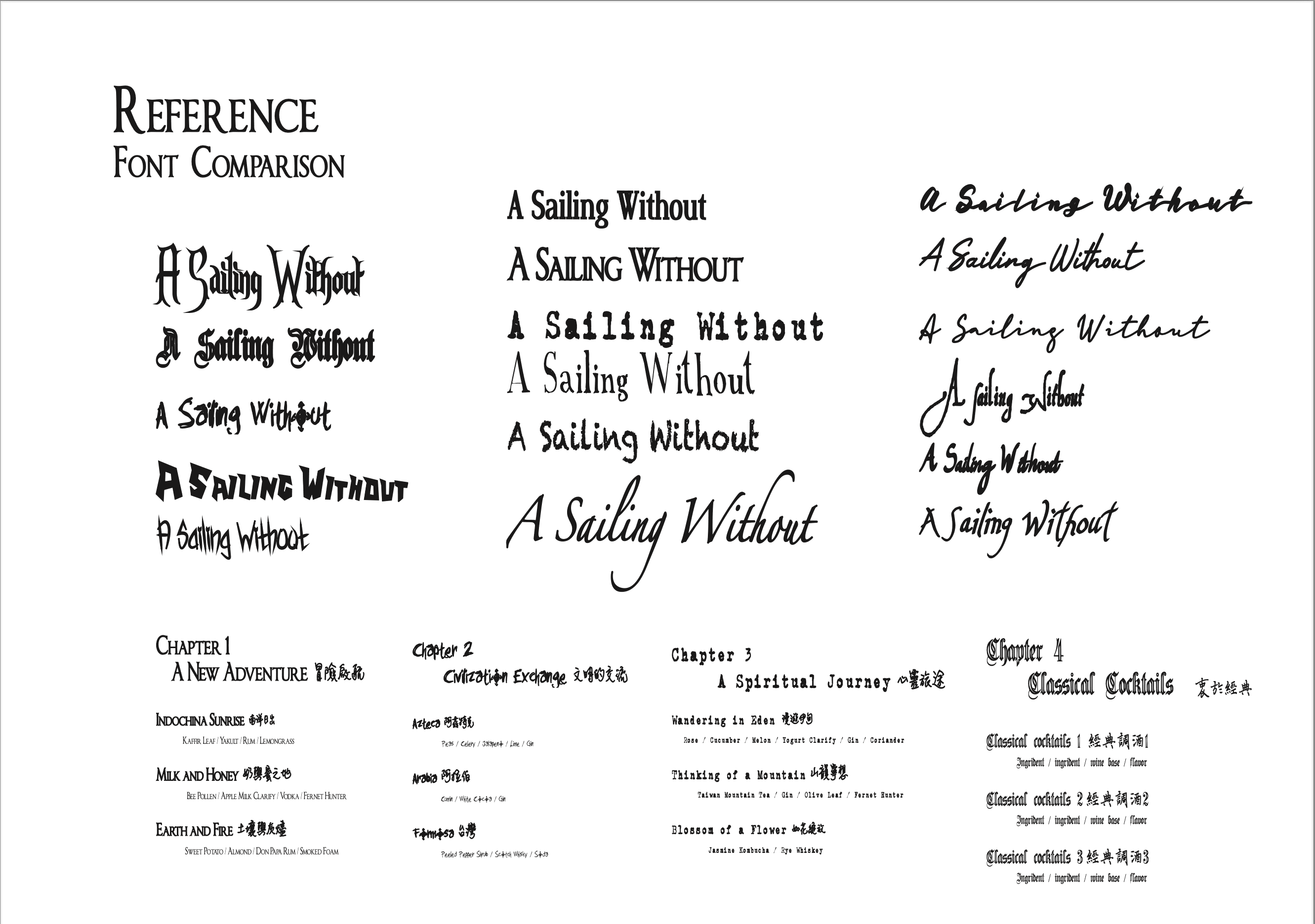 The graphic design project for a bar menu of cocktails inspired by the concept of sailing