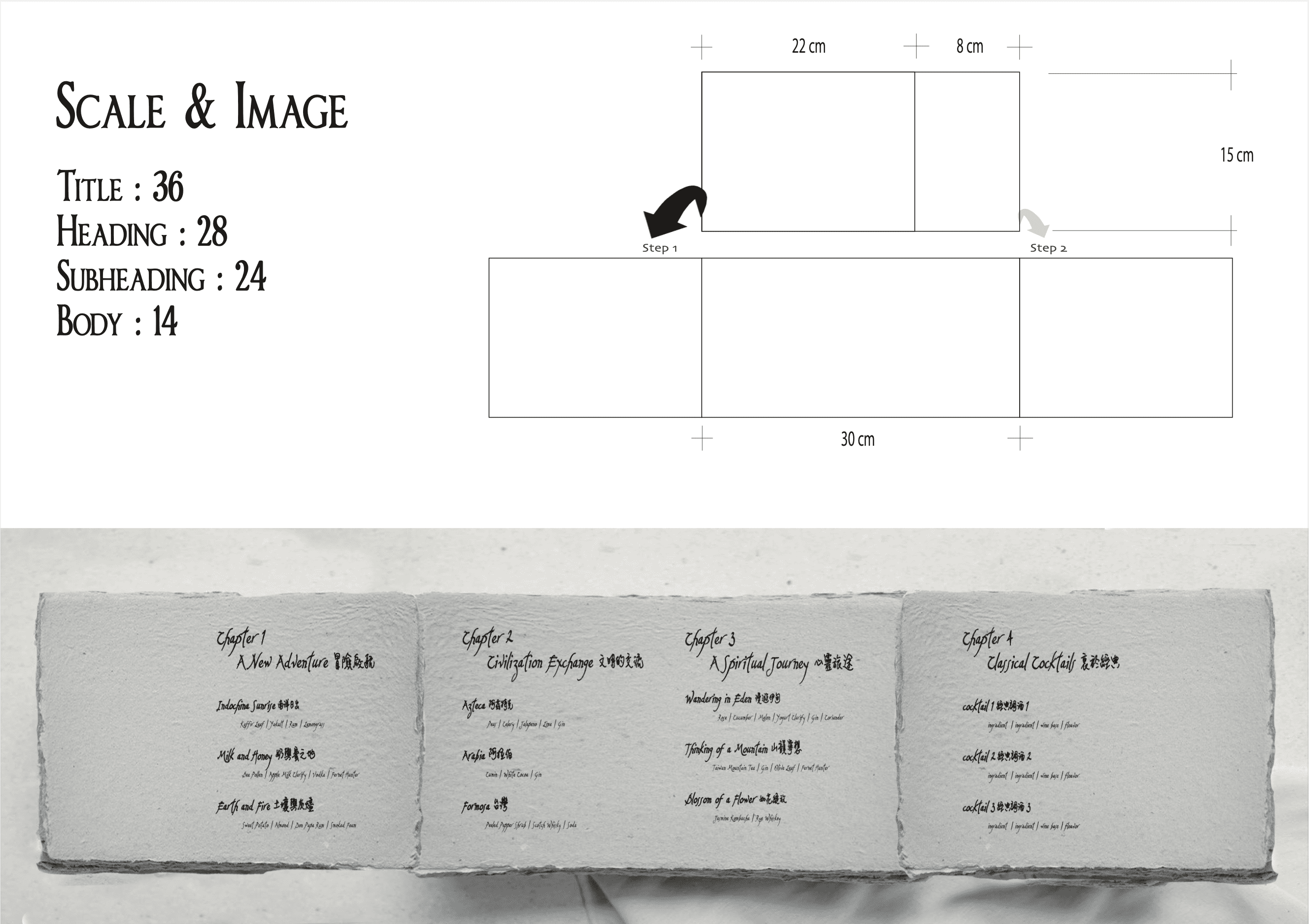 The graphic design of the cocktail menu draws inspiration from the vast currents of the heart.